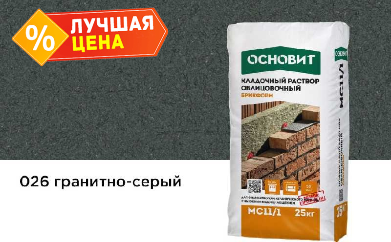 Цветной кладочный раствор ОСНОВИТ БРИКФОРМ МС11/1 гранитно-серый 026, 25 кг