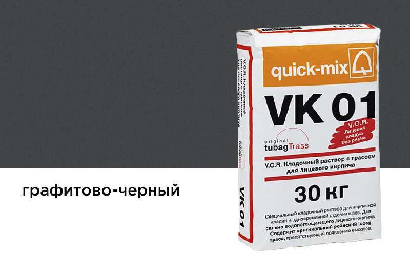 Цветной кладочный раствор quick-mix VK 01 с трассом для выполнения кирпичной кладки и одновременной отделки швов (в одном рабочем цикле) при использовании сильно водопоглощающего лицевого кирпича с водопоглощением ~ 8-10%.