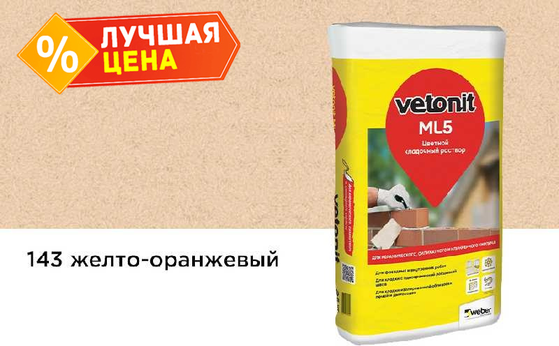 Цветной кладочный раствор weber.vetonit МЛ 5, желто-оранжевый, №143, 25 кг