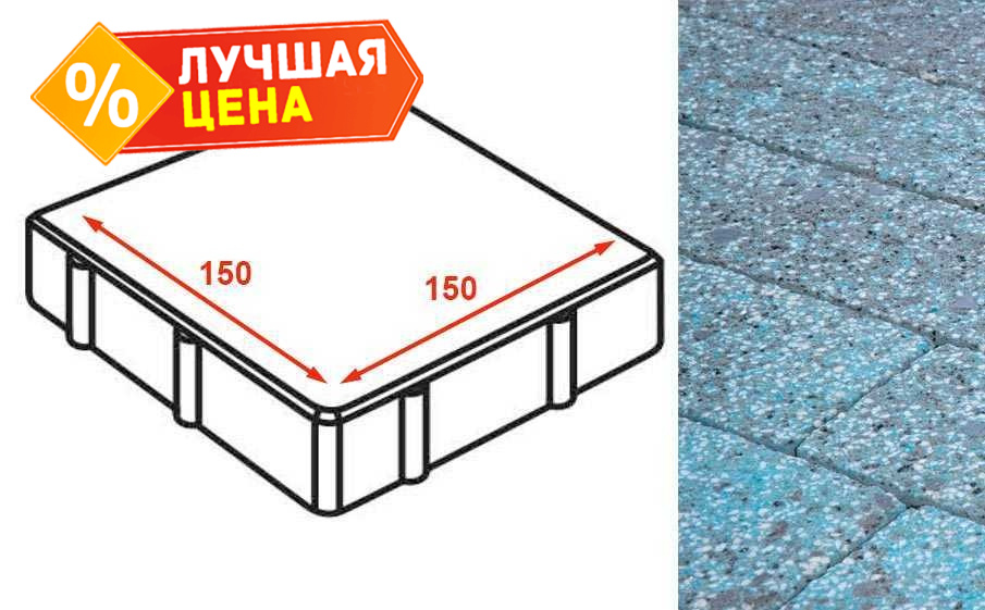 Плита тротуарная Готика Granite FINERRO, квадрат, Азул Бахия 150х150х80 мм